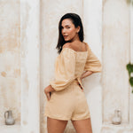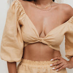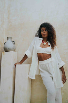 The Soleil Set is the perfect staple that you won´t want to miss from your summer wardrobe. The top comes with puff sleeves, an off-shoulder fit and versatile tying options, and a flattering fit.