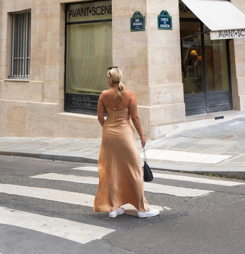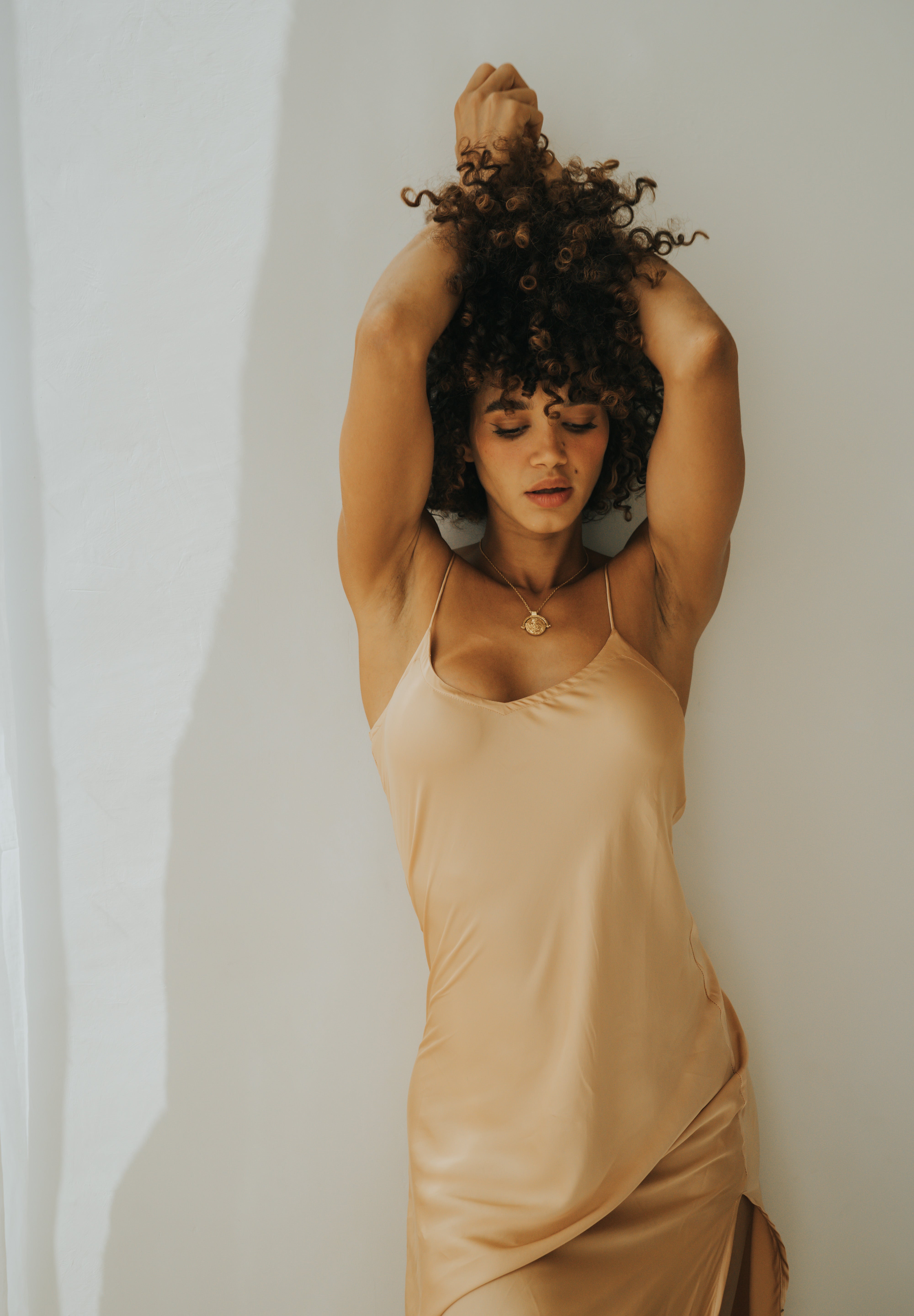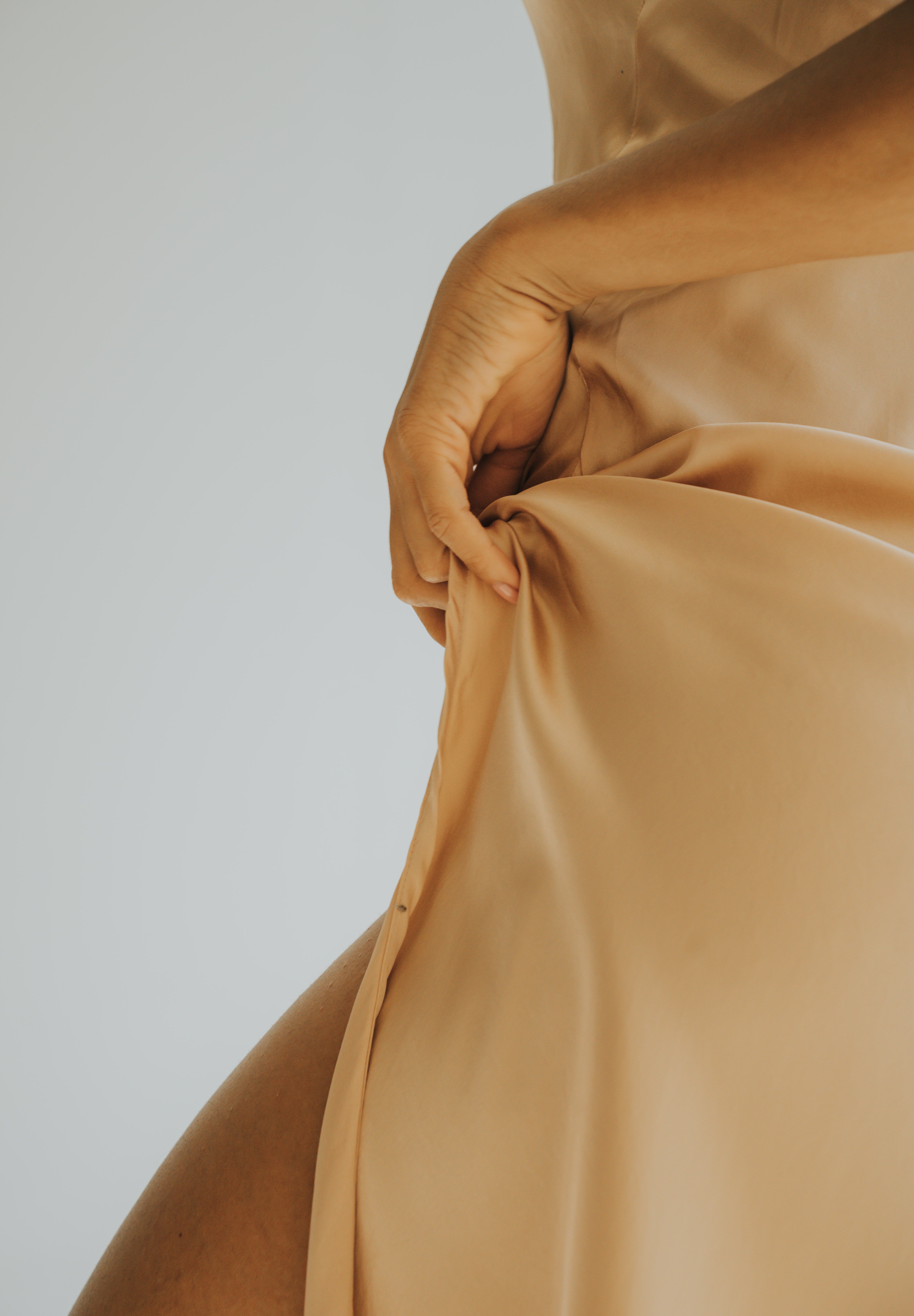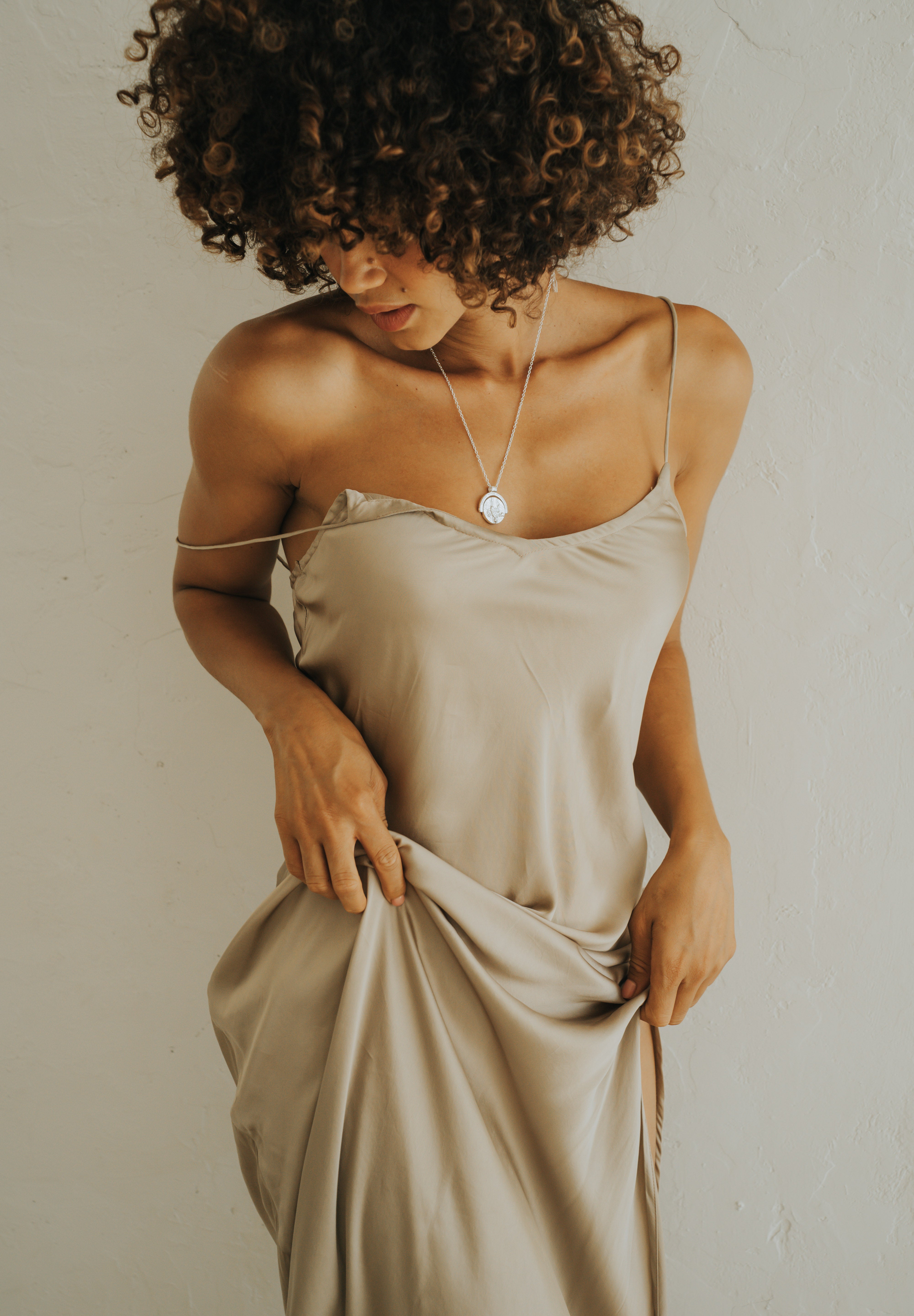 Faye is an A shaped maxi dress featuring two beautifully muted hand-dyed signature hues. The fabric is generously cut on the bias for a beautiful drape, made from sustainable satin that has a perfectly hugging stretch to it. Faye features a seductive low back, adjustable straps and a high side slit.