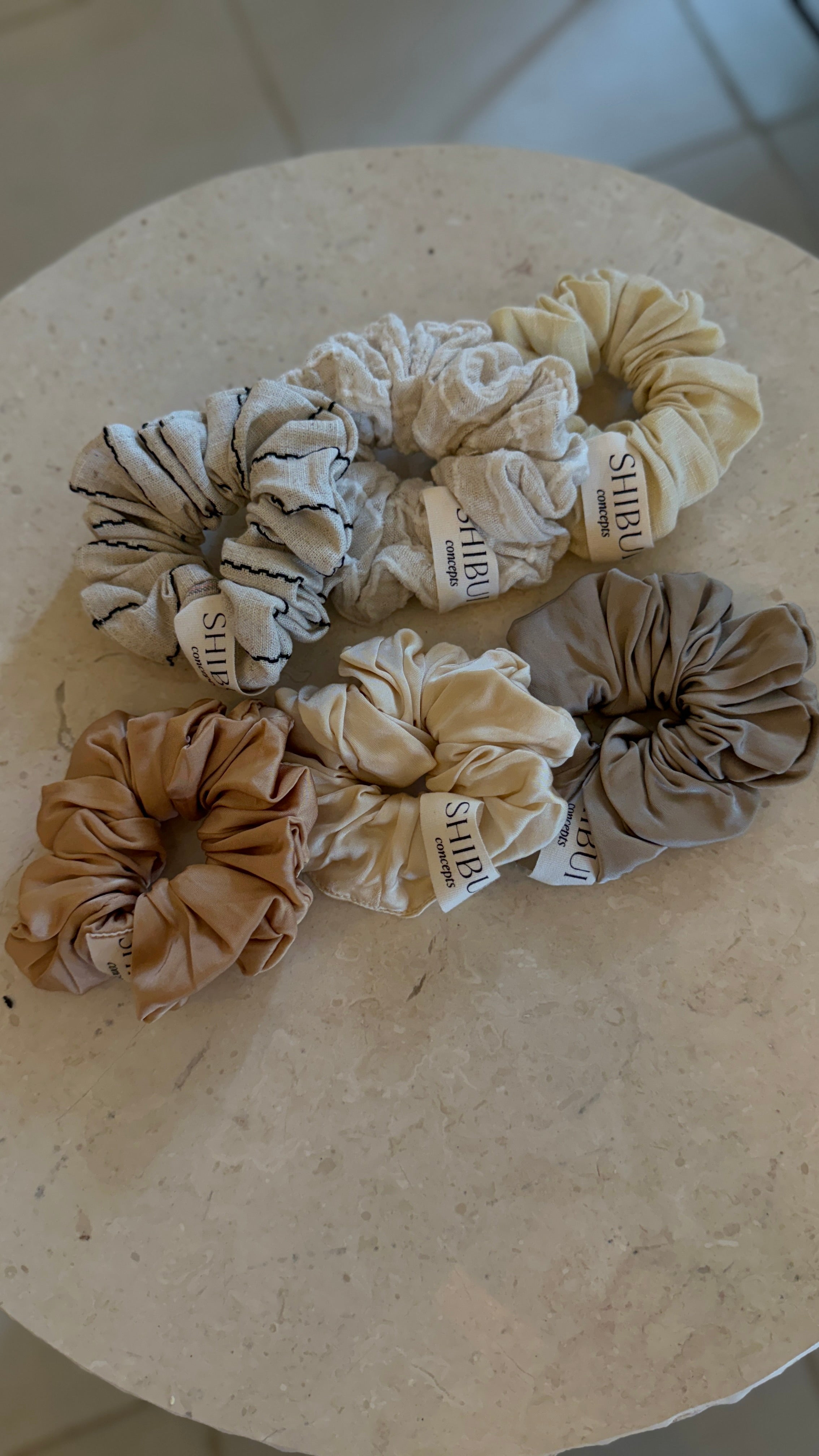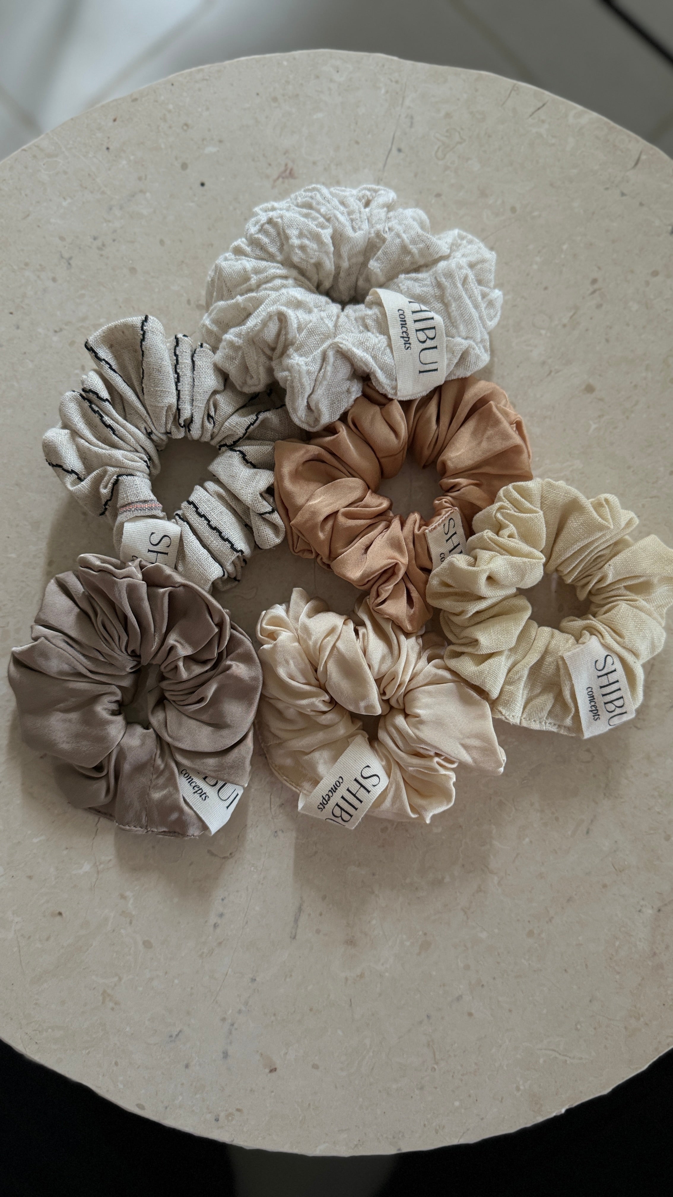 our new maxi-sized Hair Scrunchies, Handcrafted from left over fabrics from our collections, ensuring a zero waste approach. The Scrunchie is adorned with our logo label and comes in multiple colours in viscose satin, linen and cotton blends.