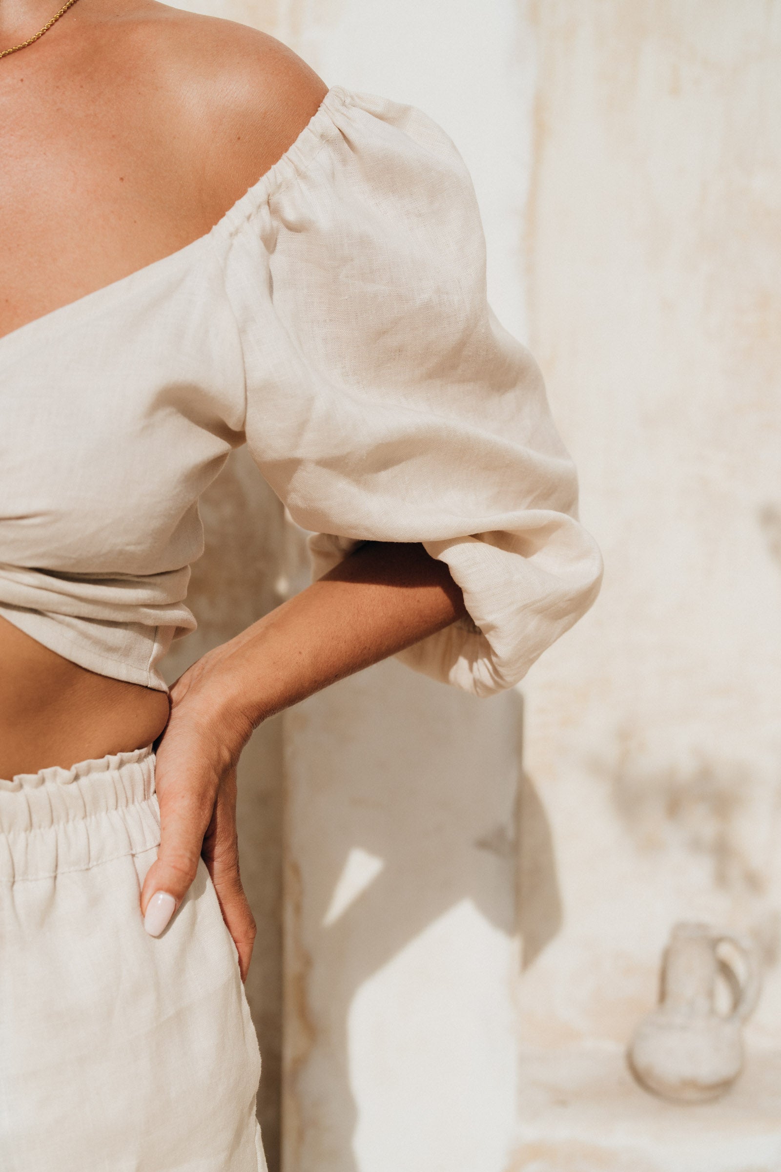 The Soleil Set is the perfect staple that you won´t want to miss from your summer wardrobe. The top comes with puff sleeves, an off-shoulder fit and versatile tying options, and a flattering fit.